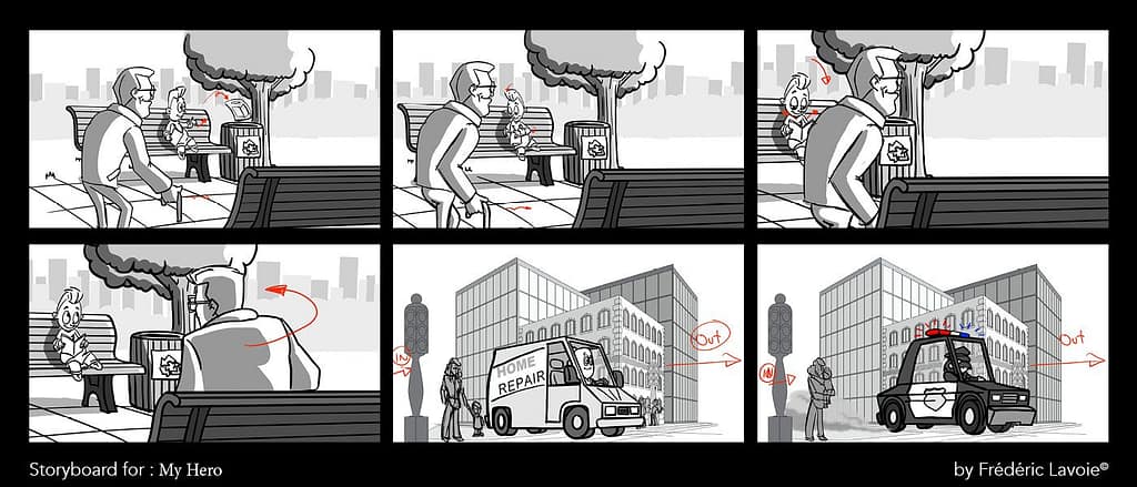 Premier projet de storyboard, réalisé avec le logiciel Toonboom Storyboard Pro.